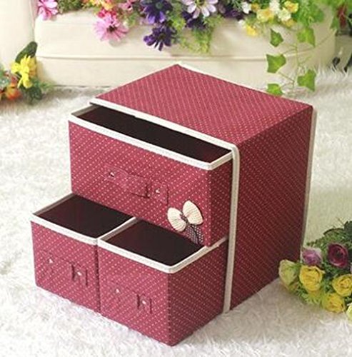-. Feature : Material: Non-woven + Hard fibreboard / Size: (L*W*H)30*22*29cm/11.8"*8.7"*11.42" / The number of cells: 3 cells / Product Features:Breathable.Mouldproof, Moistureproof and no harm to health. / Suitable:Underwear,Bags,Jewelry,Remote control,Headset etc.