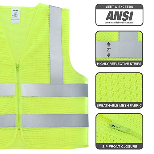 Neiko 53958A High Visibility Safety Vest with Mesh Fabric, ANSI/ ISEA Standard | Color Neon Yellow | Size XL