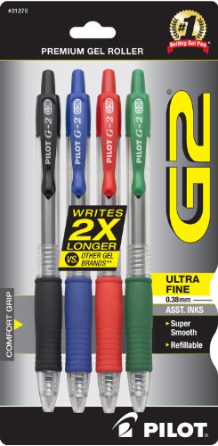 - Title : Pilot G2 Retractable Premium Gel Ink Roller Ball Pens, Ultra Fine Point, 4-Pack, Assorted Colors, Black/Blue/Red/Green Inks (31276)