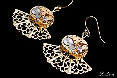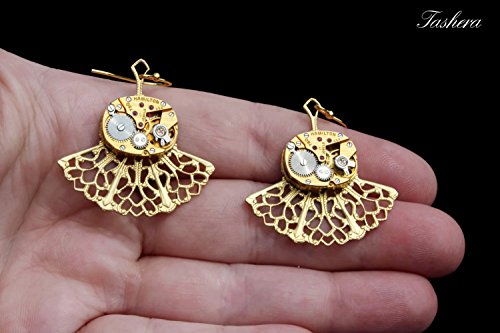 -. Title : 14 K Yellow Gold Steampunk Filigree Earrings