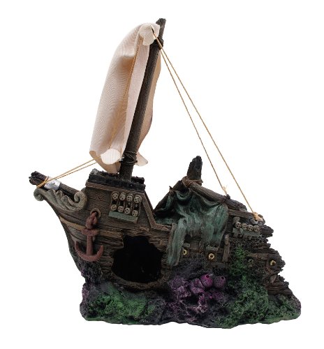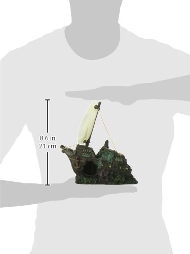-. Feature : Sunken Half Ship décor for your aquarium / Safe and non toxic / 19th century sunken ship bow with fabric sails and ropes foreground / Measures 5.3" x 3.95" x 8.65"