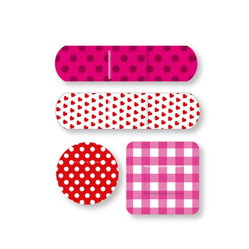 -. Feature : Heart themed bandages / 24 assorted bandages / 5 cute designs / Perfect for those little ouchies