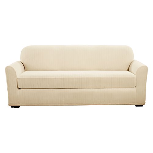 -. Title : Sure Fit Stretch Pinstripe 2-Piece - Sofa Slipcover - Cream (SF39074)
