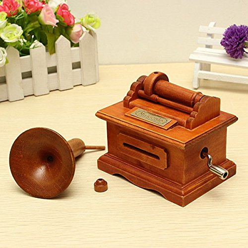 - Feature : Nostalgic Retro Wooden Hand-Cranked Music Box With Paper Tape Description: Size:126*150*93mm Material: Wood Color: Wood color Weight:320g There are have three paper tape, one is , the other two blank paper tape,you can spectrum up your own favorite songs. This is a great adornment in most of scenes. It is also a great DIY present for your children,your friends and your lovers. Package Included: 1 x Music Box 3 x Paper Tape 1 x Tool