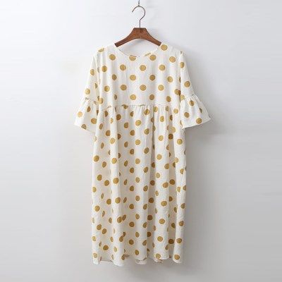 귀여운 도트와 프릴소매가 돋보이는 여유로운 루즈핏 원피스.