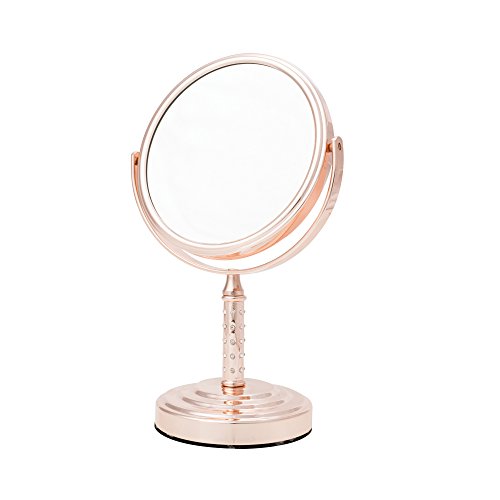 Danielle Creations Midi Rose Gold Vanity Mirror with Crystal Studded Stem, 5X Magnification