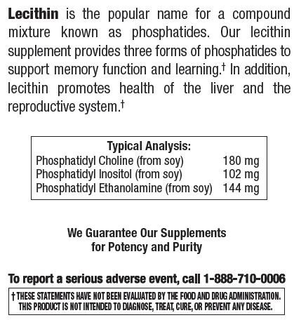 OUR LECITHIN CAPSULES ARE TASTELESS — Unlike soy lecithin granules, powder, or liquid soy lecithin, our soya lecithin softgels have no taste. Each pill contains Phosphatidyl Choline, Inositol, and Ethanolamine: phosphatides that maximize function.