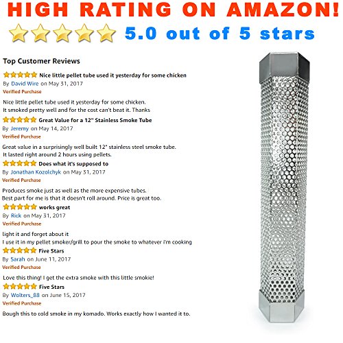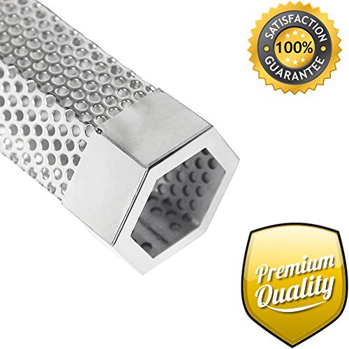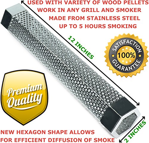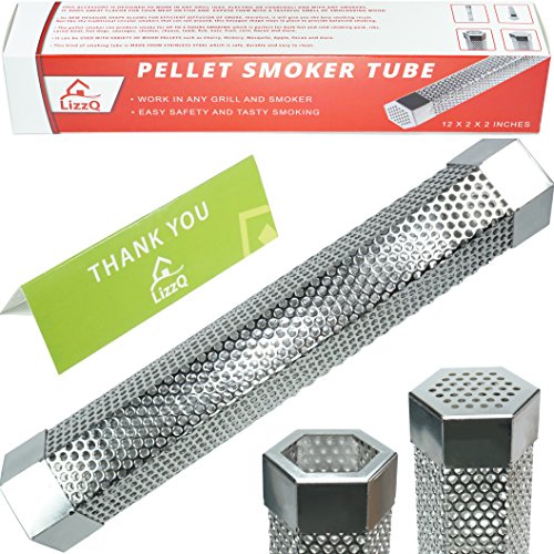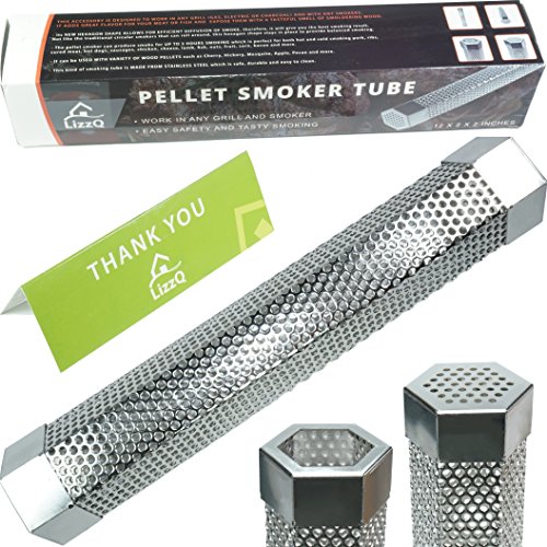 LizzQ 12 inch BBQ Pellet Smoker Tube - for any Grill or Smoker Hot or Cold Smoking - Easy, safety and tasty smoking - Hexagon shape - Stainless steel ? Make cook more fun - A perfect BBQ party with LizzQ Pellet Smoker Tube will inspire you and make your same old cooking routine more fun. ? A great chance for family reunion - Impress your friends and family with award winning barbecue, smoked nuts and cheese; even your own homemade bacon.