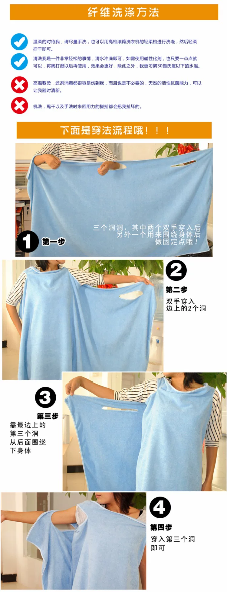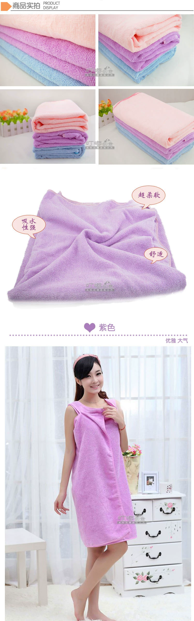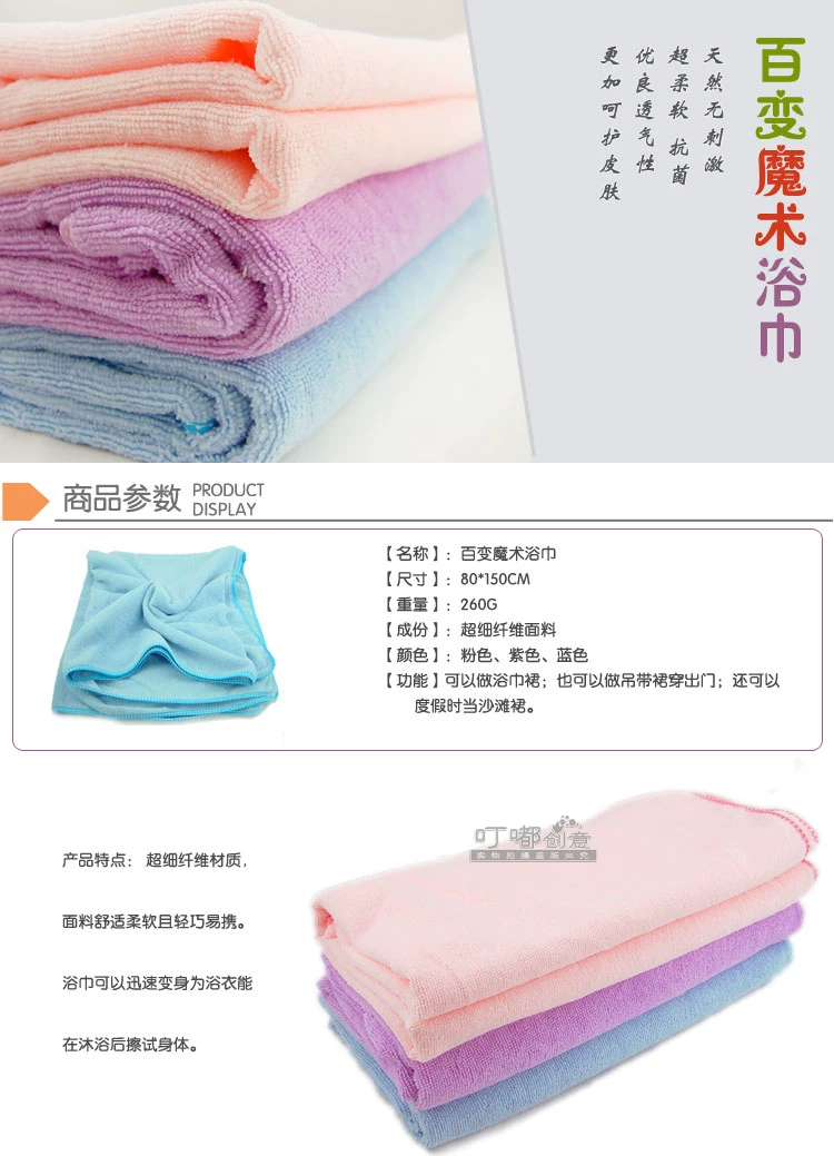 女神专用——吸水胜纯棉优等品8倍 超强吸水,耐用聚酯纤维浴巾、浴裙套装。