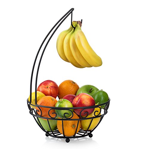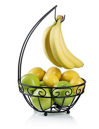 Francois et Mimi Fruit Tree Bowl Basket with Banana Hanger, Black