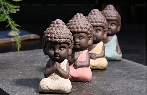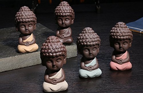 Eshylala 2 Pcs Cute Buddha Statue Small Monk Figurine Tathagata India Yoga Mandala Sculptures Tea Pet Ceramic Crafts