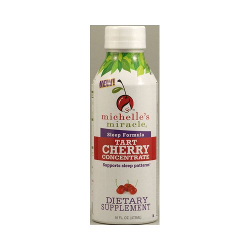 Discover The Power Of Cherries A 100% Natural Nutraceutical Blend of Tart Cherry, Valerian Root Extract, L-Theanine and Chamomile that's loaded with Melatonin and Antioxidants. 24 mcg of Melatonin. Valerian Root Extract, L-Theanine and Chamomile contain soothing and relaxing properties. These all natural Tart Cherry Nutraceuticals bring you all the health benefits you want without the additives you don't. Free Of Preservatives, additives, added sugar. Disclaimer These statements have not been evaluated by the FDA. These products are not intended to diagnose, treat, cure, or prevent any disease. Michelle's Miracle Sleep Formula Tart Cherry Concentrate Directions Shake Well. Add 1 oz. (2 TBS) of concentrate to 8-10 oz. of water or other juices. Drink a glass a day for 4-6 weeks for best results. Best taken at night. Note: Effects may not be noticeable for 4-6 weeks. Please refrigerate after opening. Supplement Facts Serving Size: 2 Tablespoons (30 mL) Servings Per Container: About 16 | Amt Per Serving | % Daily Value | | | Calories | 30 | | | | Total Carbohydrate | 7 g | 2% | | | Dietary Fiber | 1 g | | | | Sugar | 6 g | | | | Protein less than | 1 g | | | | Potassium | 25 mg | | | Proprietary Blend Tart Cherry Concentrate (fruit) (Montmorency with naturally occurring Melatonin 21 mcg) Valerian Root Extract, L-Theanine, C 0 |