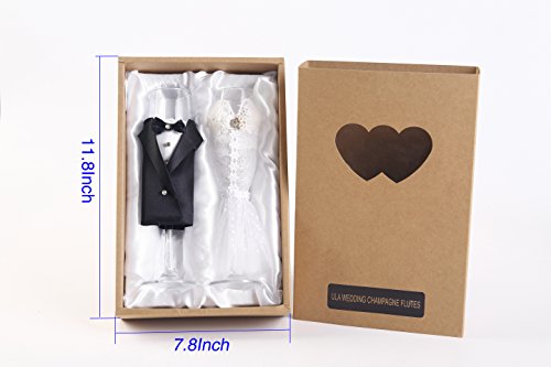 Studio : USA Novelties Publisher : USA Novelties Binding : Office Product Product Description A bridal gown on the dress a young girl has always dreamed of and the bold, black tuxedo made for a handsome man, these champagne glasses are charming and unique. Perfect for that special day in your life that you want to remember forever, these glasses are perfect for treasuring year after year. They are a perfect shower gift for the wedded couple-to-be, full of love, beauty, and elegance. 0
