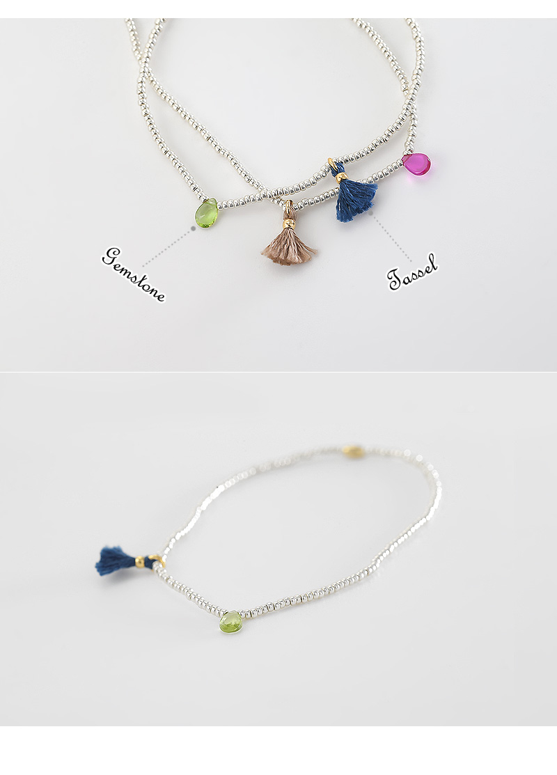 프리사이즈로 착용감이 편안하며, 원석과 태슬의 포인트가 있기 때문에 더욱 예쁜 팔찌에요.