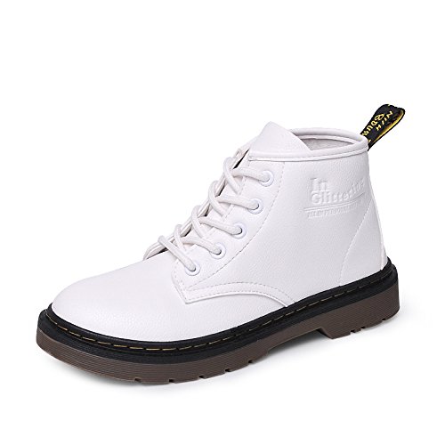 Studio : YLSZ-Shoes Publisher : YLSZ-Shoes Product Description Sole material: Rubber For gender: Female style: European and American toe shape: round head Heel shape: Rough with popular boots models: Martin boots popular elements: waterproof function: warm cylinder height: Thickness: Ordinary thick Wearing style: Front tie pattern: Solid Suitable season: winter, autumn Sole craft: Adhesive Color: white, black Size: 35,36,37,38,39,40 0