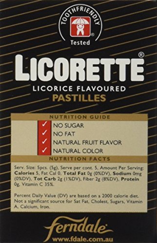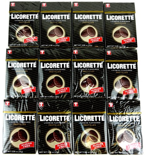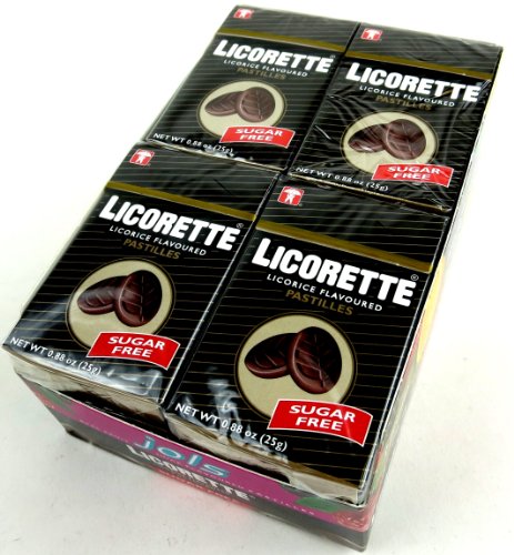 -. Binding : Misc. -. Brand : Black Tie Mercantile -. EAN : 0651818924738 -. Feature : Includes twelve 0.88 oz packets of Licorette Sugar Free Licorice Flavored Pastilles / Gluten Free, Sugar Free, Fat Free / Natural Flavors and Colors / Product of Australia / In a BlackTie Box -. IsAdultProduct : 0 -. Label : Black Tie Mercantile -. Manufacturer : Black Tie Mercantile -. NumberOfItems : 12 -. ProductGroup : Grocery -. ProductTypeName : GROCERY -. Publisher : Black Tie Mercantile -. Studio : Black Tie Mercantile -. Title : Licorette Sugar Free Licorice Flavored Pastilles, 0.88 oz Packets in a BlackTie Box (Pack of 12) -. UPC : 651818924738