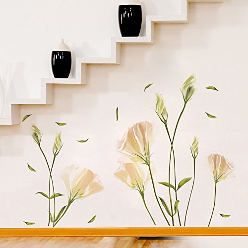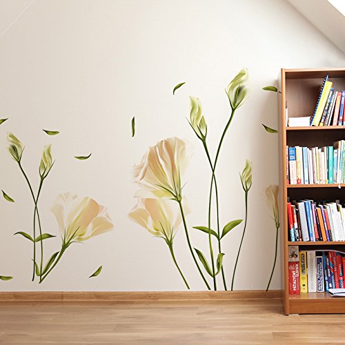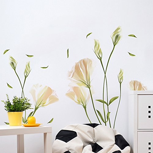 Flower Wall Stickers – Lilly Wall Decal – Flower Vinyl Wall Décor – White Flower Wall Decals – Peel and Stick by Dooboe
