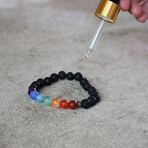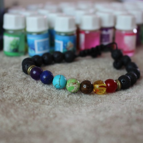-. Feature : 7 Chakra Bracelet Material:Real natural stones Bead size:8mm Length:19cm Packing:1pc/bag Weight:15g/pc / The lava stones which can be used for aromatherapy - just put a few drops of the oil on the lava beads to experience your aromatherapy throughout the day / On the black lava beads. They are very porous and will absorb and diffuse the oil,I added a few drops of essential oils to lava beads ,works good. / Each chakra bead and its color represents a specific chakra on the body. For example, the heart, third eye, etc. By keeping your Chakra's open, it allows you body to perform and feel at its best! The lava is probably just there cause it's cool! / Please rest assured purchase!We have checked the quality strictly When the product unfolds in front of you,you can return if you don't like this products