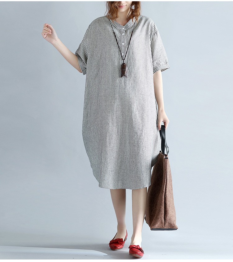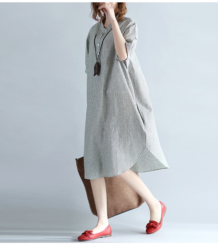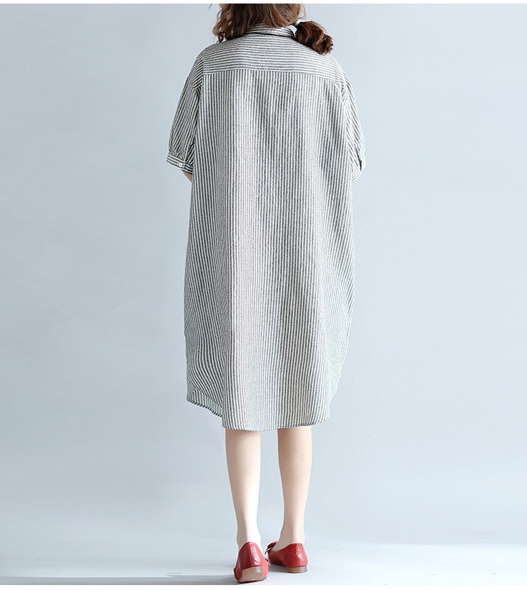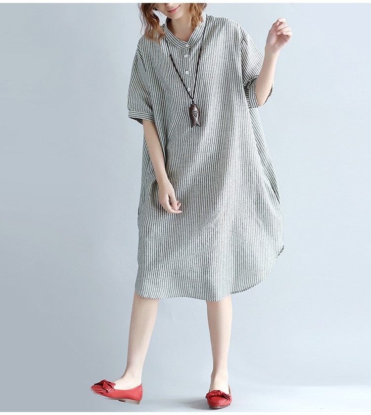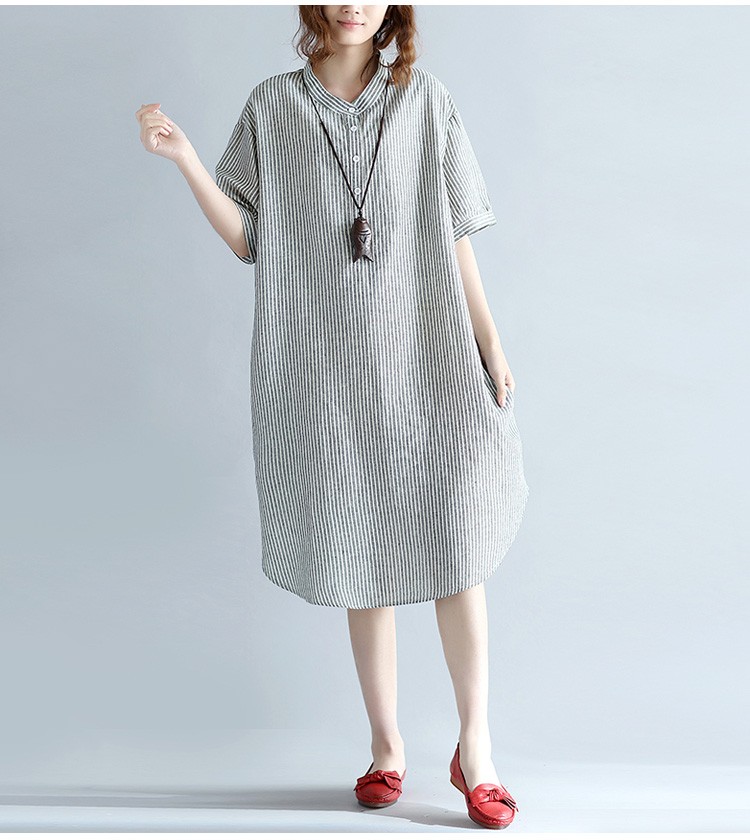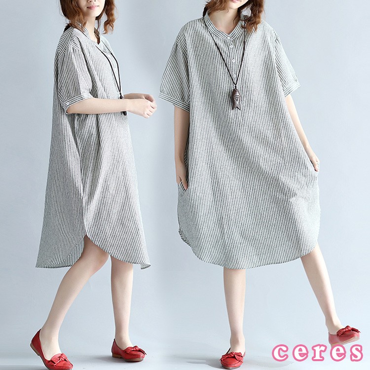 【製品仕様】■商品名半袖ワンピース ひざ丈 シャツワンピース ストライプ ゆったり 体型カバー 前開き■商品説明シンプルな半袖のシャツワンピース。縦ストライプで着やせひきしめ効果も◎。前開きだから、授乳中ママにもおススメ。■サイズ/寸法フリーサイズ■素材/材質コットン■色/カラー#1グレー【検索キーワード】ワンピース 半袖 夏 ゆったり レディース ひざ丈 シャツワンピース ヒッコリー 体型カバー 着やせ スタイルアップ 美脚 授乳服 マタニティ服 20代 30代 40代 50代