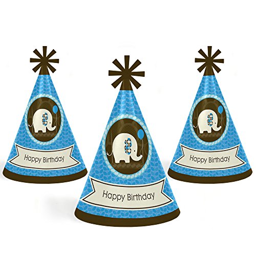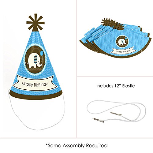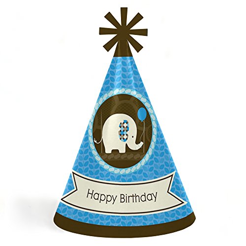 -. Title : Boy Elephant - Cone Happy Birthday Party Hats for Kids and Adults - Set of 8 (Standard Size)