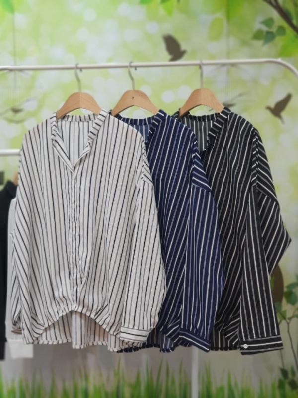 "하을하늘하면서도 고급스러운 루즈핏 차이나카라 블라우스"차이나 카라로 심플하면서세련미가 듬뿍담긴 스트라이프 블라우스클래식함이 드리는 매력넘치는 스타일링~청바지와 함께 캐주얼하게기본 슬랙스와 함께 세련된 오피스룩으로또한 외출룩, 데이트룩어디에나 즐기기 좋은 블라우스굿~ 초이스 해보세요!!COLOR아이보리,네이비,블랙SIZEFREE어깨61/가슴59/소매46/암홀20/밑단52/총장72FABRIC폴리혼방?