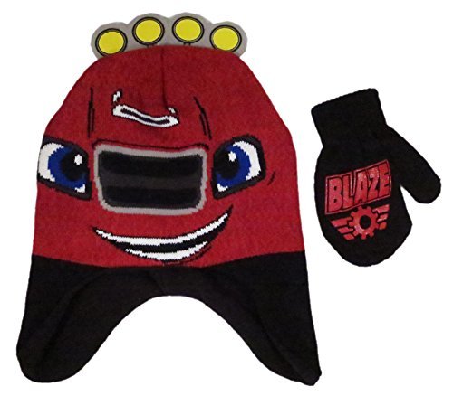 Binding : Apparel Product Description In the cold weather and the winter days dress your little boy with this fun lovely hat and Mitten set from Nickelodeon adorable designed featuring Blaze and the Monster Machines 3D headlights added for style, Cute black mitten lace printed in the middle size boys 4 - 7, your child will stay warm comfortable during the cold winter days One size, officially licensed by Nickelodeon products, 0
