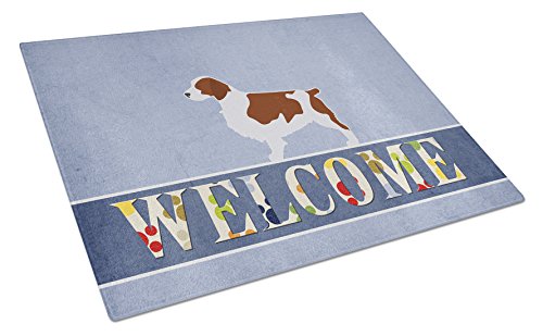 Caroline's Treasures Welsh Springer Spaniel Welcome Glass Cutting Board Large, Multicolor