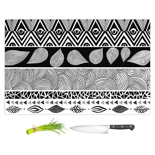 DiaNoche Designs CB-PomGraphicTribalandNatPlay2 Pom Graphic Design-Tribal and Nature Play Unique Kitchen Slicing Dicing Bar Artistic Decorative Cutting Boards from, Large 15" x 11"