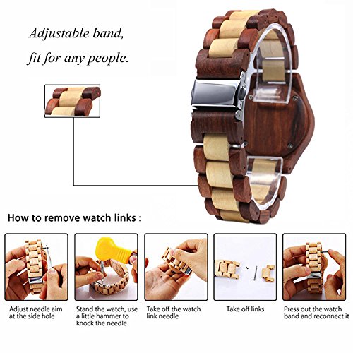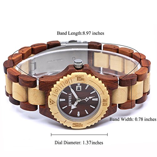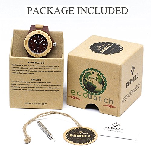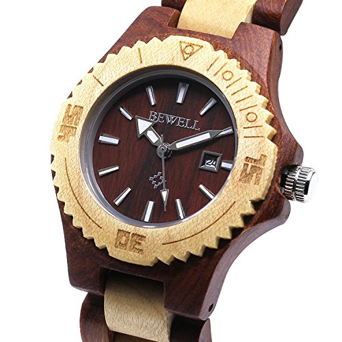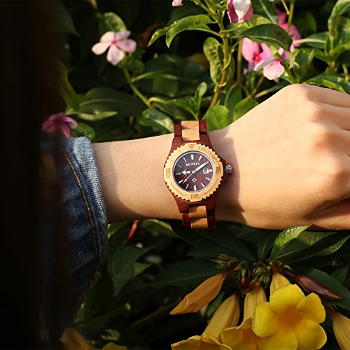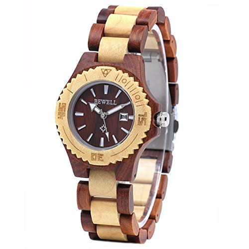 Bewell Womens Wood Watches Hypoallergenic Watchband Quartz Analog Date Wrist Watch for Ladies