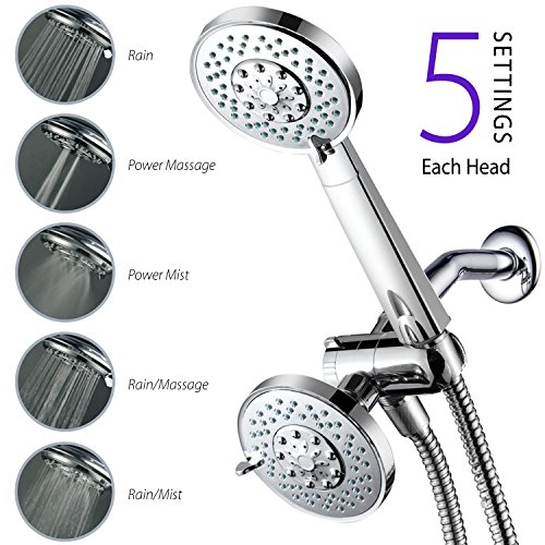 Dual Shower Head/Handheld Combo includes Fixed Mount Overhead Shower Head, Handheld Shower, 3-Way Shower Arm Diverter with Angle-Adjustable Overhead Bracket (Shower Head Holder), Stainless Steel Shower Hose and Plumber's Tape. This 3 Way Multi-Function Shower Combo makes great Housewarming Gifts for new home, Halloween, Thanksgiving or Christmas Present.