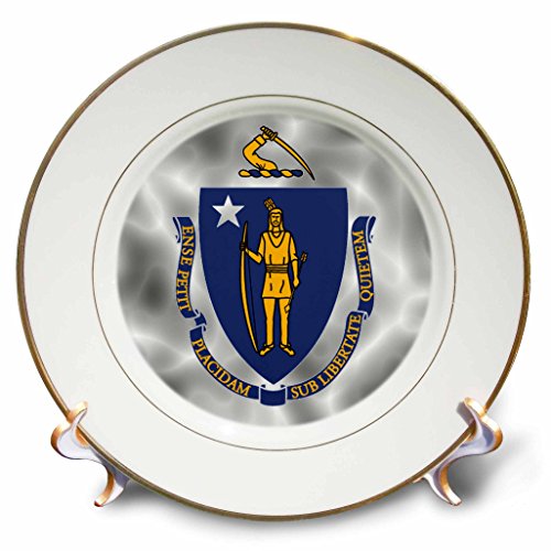 3dRose cp_127636_1 Massachusetts State Flag Porcelain Plate, 8-Inch