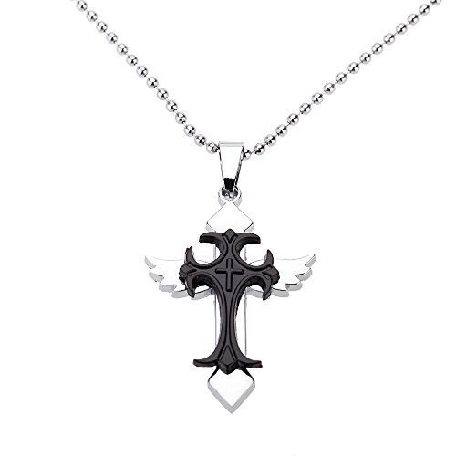 -. Title : Zytree UK(TM) New Silver Saint Jesus Christ Plated catholic Cross Angel Wing pendant Rosary Necklace For Women Men