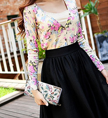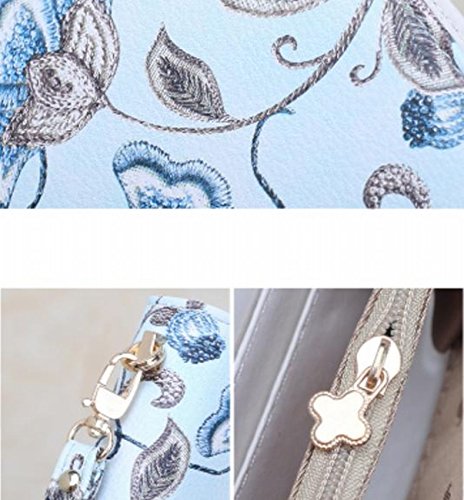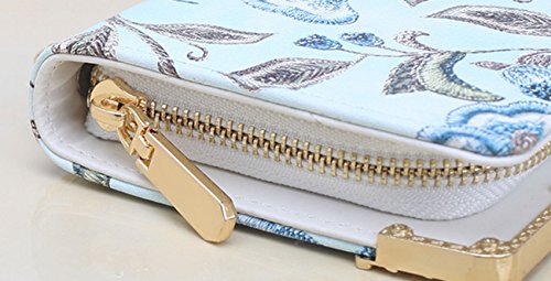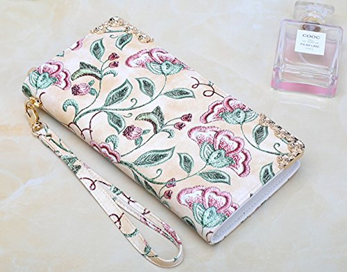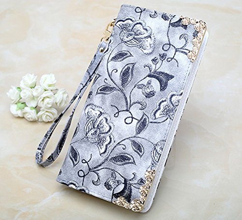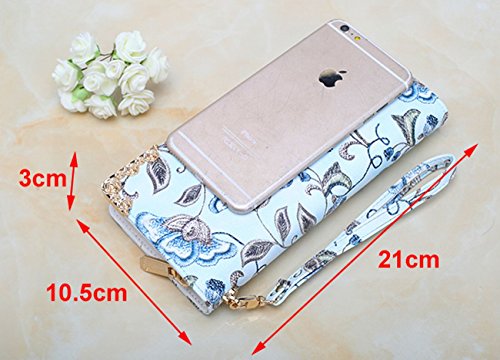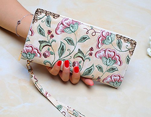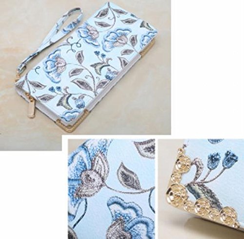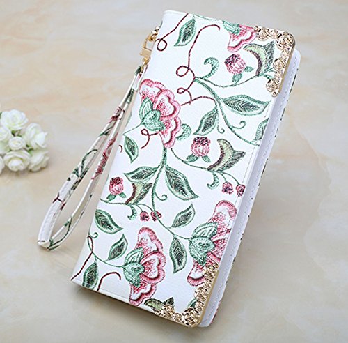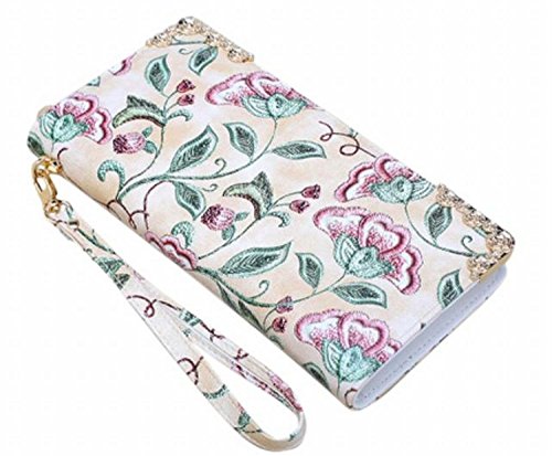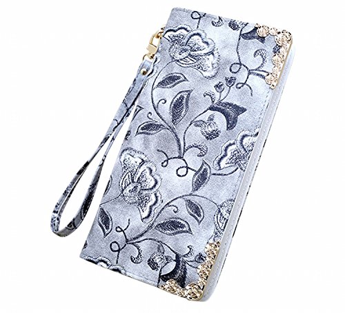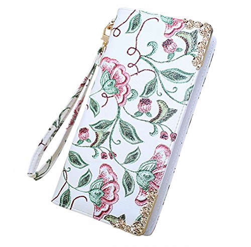 Product Description Size / Weight: 8.3 in (L) x 4.1 in (H) x 1.2 in (W) / 0.44 lbs Materials: Made with soft premium quality PU leather with an elegant embroidery pattern and metal edges Large Capacity: plenty of rooms for Credit Cards, Coins, Checkbook, Ticket, License, Receipts, Coupon, Insurance Cards, Debit Cards, Smartphone / iPhone etc. Beautiful and adorable design for many occassions to hold as a clutch for parties, shopping, office etc. Absolutely a gorgeous combination of beauty and utility - Excellent gift for you and your female friends. 0
