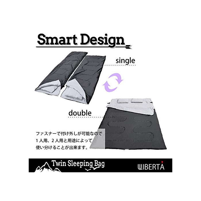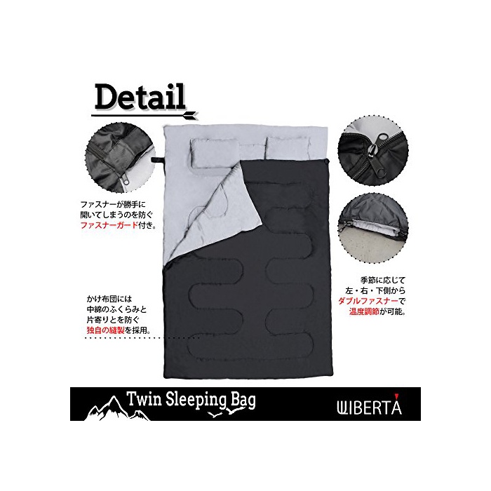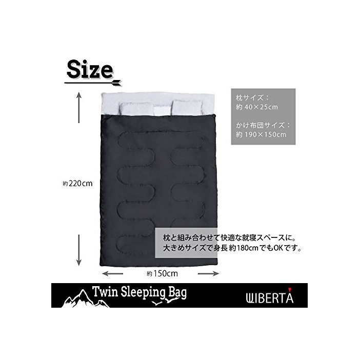 원본상품명: LIBERTA(リベルタ) 2人用 袋 シュラフ スリピングバッグ 封筒型 丸洗い 最低使用度-5度 納袋 枕付き ブラック