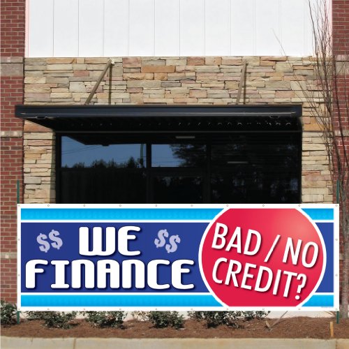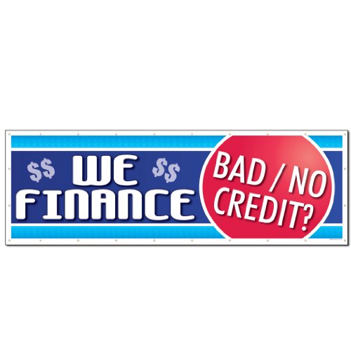 Auto Sales Banner - 3' x 9' "We Finance Bad Credit” 10 oz. Vinyl Banner, with Grommets for Hanging