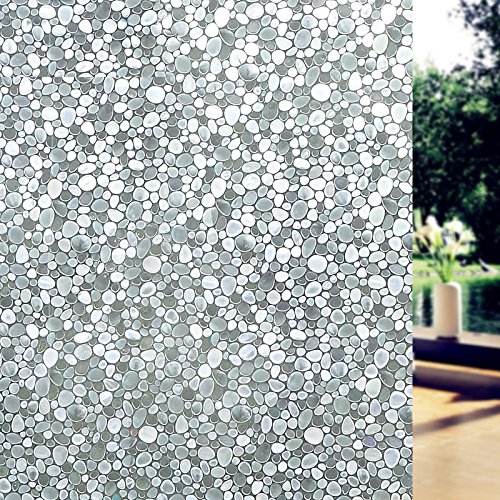 Becry Vinyl Adhesive Free 3D Window Decals Static Cling Stone Pattern Frosted Bathroom Shower Privacy Glass Window Film Covering,17.7-by-78.7 Inches(45 x 200CM)