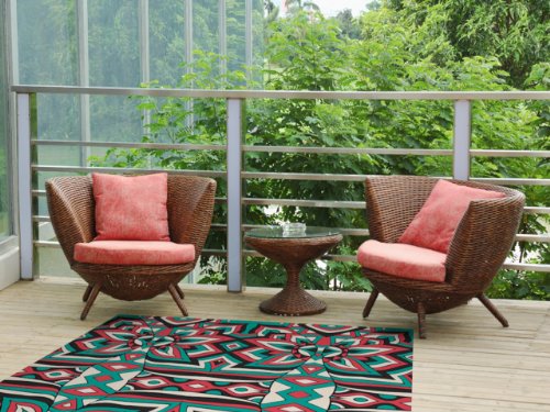 Kess InHouse Pom Graphic Design "Ethnic Floral Mosaic" Teal Red Indoor/Outdoor Floor Mat, 4-Feet by 5-Feet