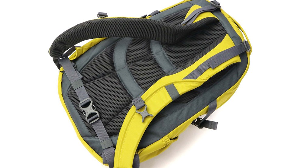 本体背面やリュックストラップにはクッション材が使用されて、ウエストストラップ・チェストストラップも設けているため、体への負担を軽減してくれます。背負い心地にも配慮された嬉しいつくりが魅力的です。