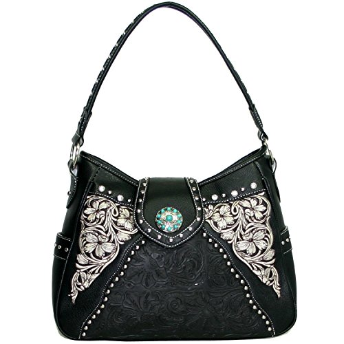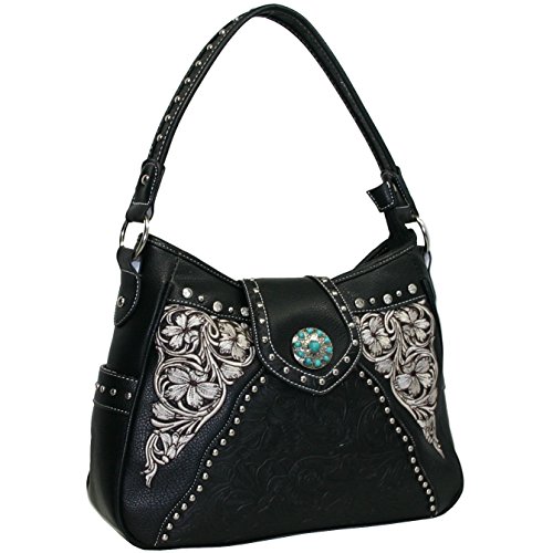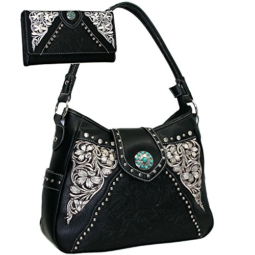Western Turquoise Concho Accented Handbag Purse With Matching Wallet