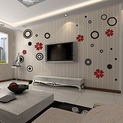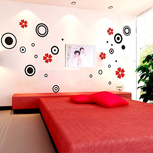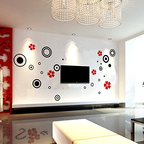 -. Title : Amaonm 3d Plastic Red Flowers with White Black Circle Entrance Wall Decals Wall Sticker Murals Home Art Decor for Tv Background Living Room Baby Kids Bedroom Studyroom Playroom Wall Decoration