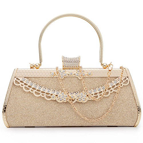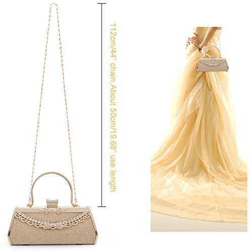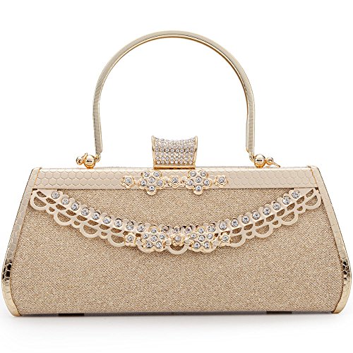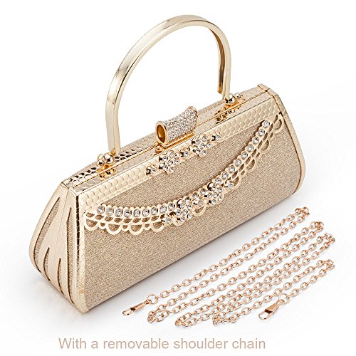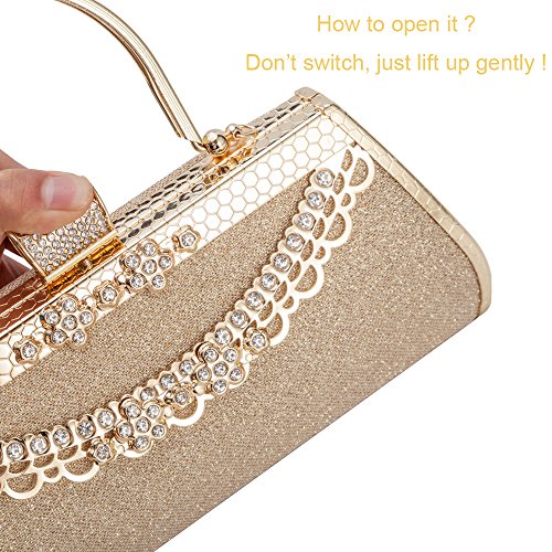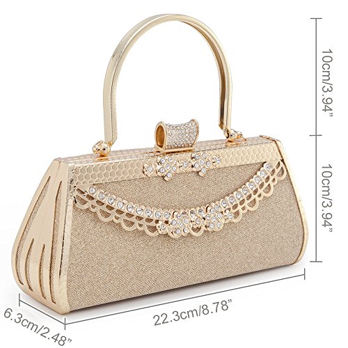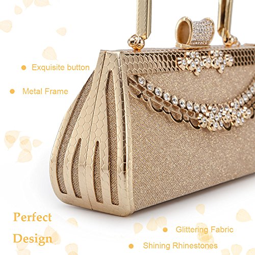 - 4. Color: Classic gold, designed for use during special occasions with formal clothing. The bag has a unique Button of full small size rhinstones.