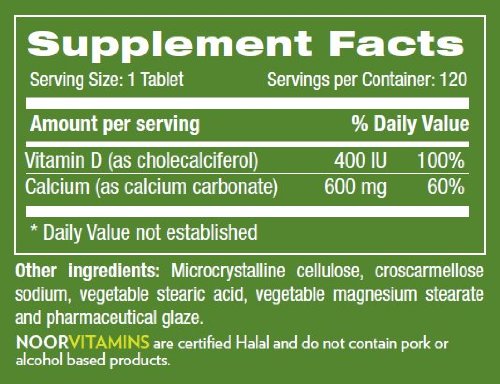NoorVitaminsTM Calcium with Vitamin D Supplement: Helps maintain strong, healthy bones*; May reduce the risk of Osteoporosis*; *These statements have not been approved by the Food and Drug Administration. These products are not intended to diagnose, treat, cure or prevent any disease.Feature