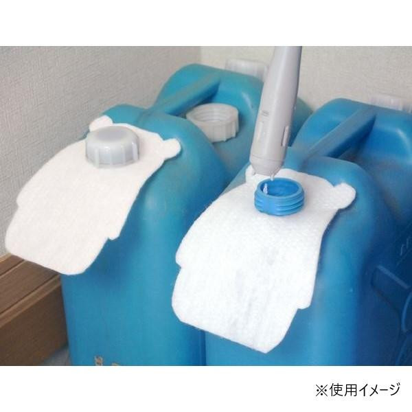 灯油缶のエプロンは、灯油缶からの給油時や給油ポンプの取り外し時の灯油のしずくを吸収します。取り付けは、灯油缶の給油口に掛けるだけ。とっても簡単です!! |