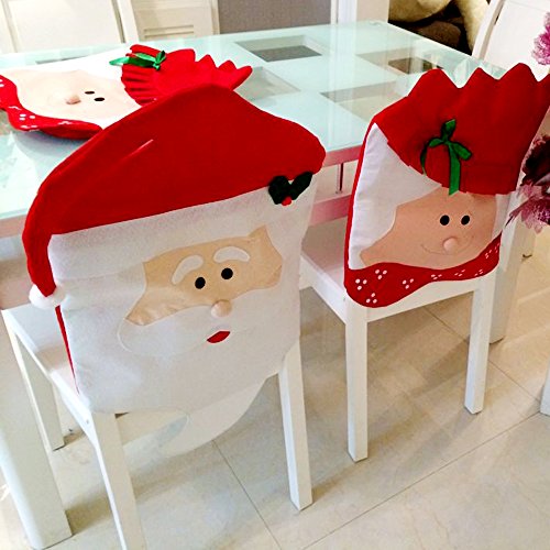 Christmas Kitchen Chair Slip Covers Featuring Mr & Mrs Santa Claus for Holiday Party Festival Halloween Kitchen Dining Room Chairs by GIM (Set of 2)