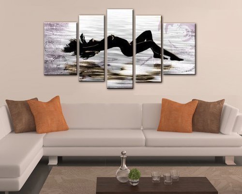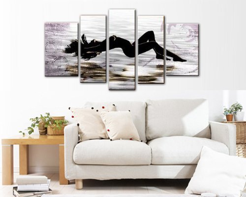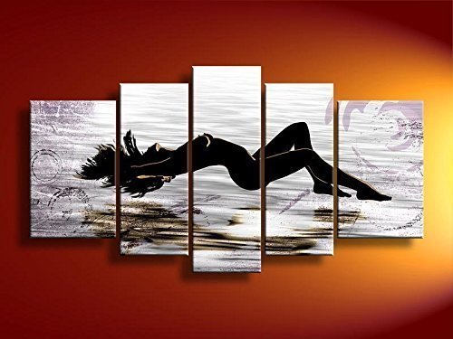 -. Title : Ode-Rin Hand Painted Oil Paintings Gift Women Lie Down 5 Panels Wood Inside Framed Hanging Wall Decoration