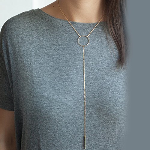 FXmimior 2 Tier Chain Layered Gold Ring Chic Pendant Chain Long Choker Layered Bar Party Wedding Necklace Jewelry For Women