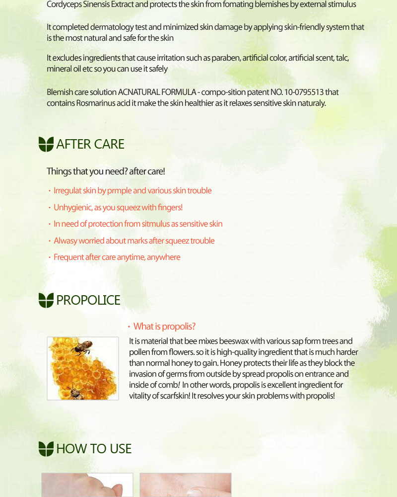 - This is trace cream of exclusive infected part which contains the infredients of propolis and centellaasiatica helps the care of the reddish dark trace - Just after aqueezed trouble and the following up control