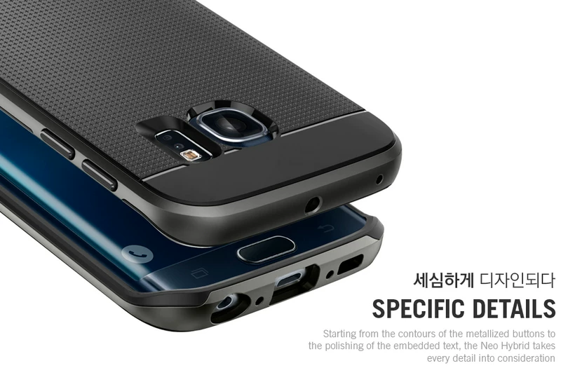 The Neo Hybrid case for the Galaxy S6 Edge focuses on style that protects. Peripheral protection is reinforced with a colored polycarbonate frame that embraces the TPU layer, creating a duality in protection and style that fully adheres to the design of the Edge??s screen without interfering with functionality. The exterior TPU flaunts a distinct pattern for a rubberized grip that??s comfortable and secure in your hand.