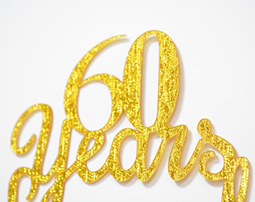 Qttier 60th Happy Birthday Cake Topper Anniversary Party Decoration Premium Quality Acrylic Gold