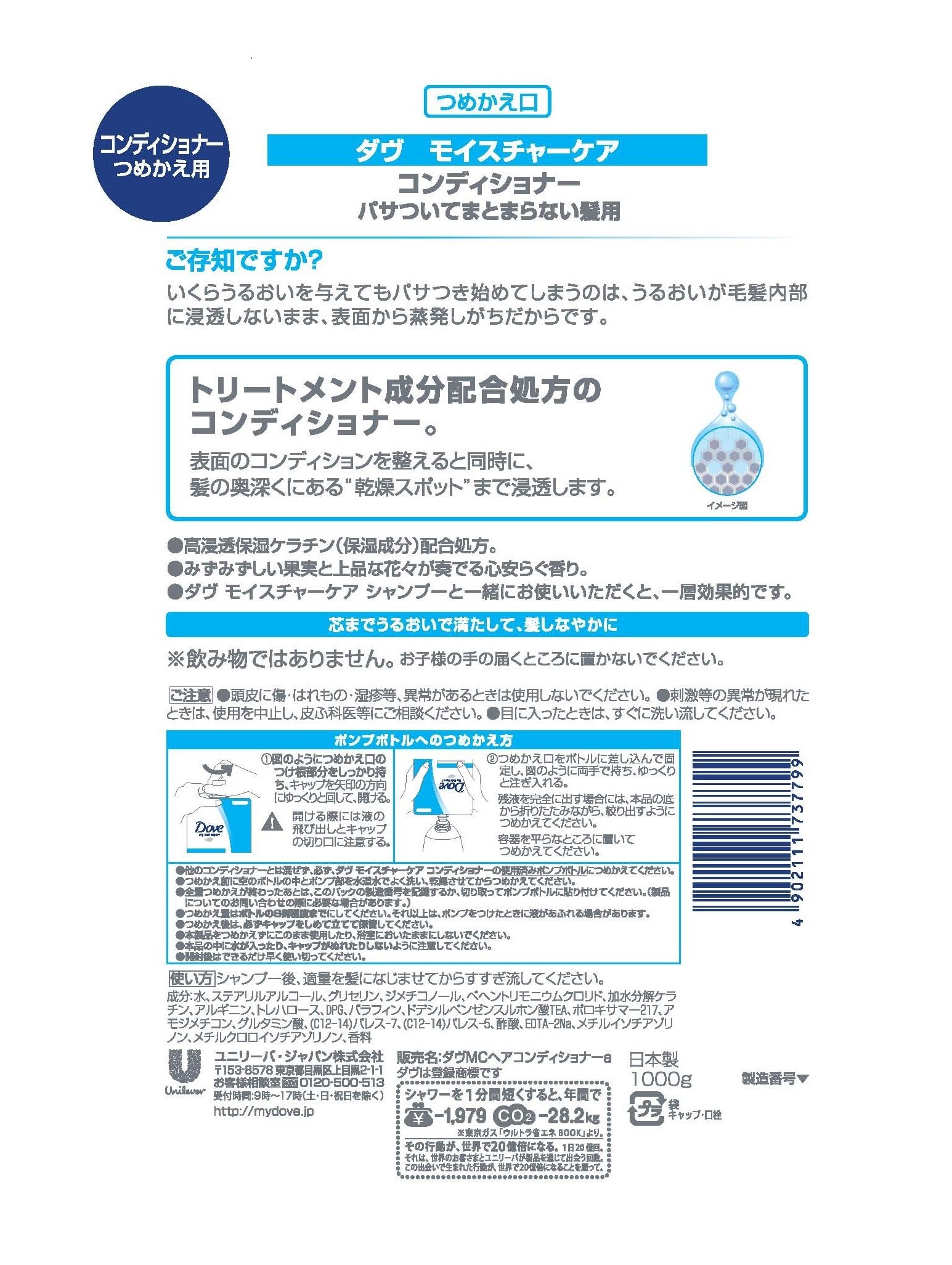 Japan Personal Care - [Capacity] Dove Moisture Care Conditioner Refill 1kg *AF27*